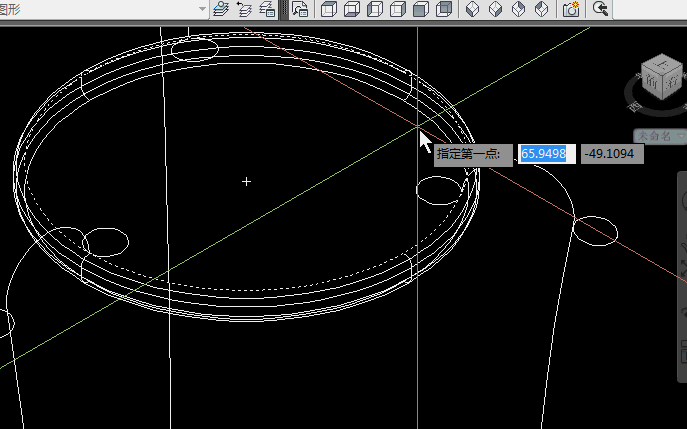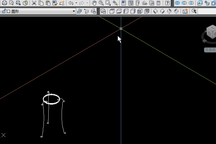 8.转西南等测视图——以400圆面的圆心为起点——向下画500mm直线(画直线前,先按F8正交)