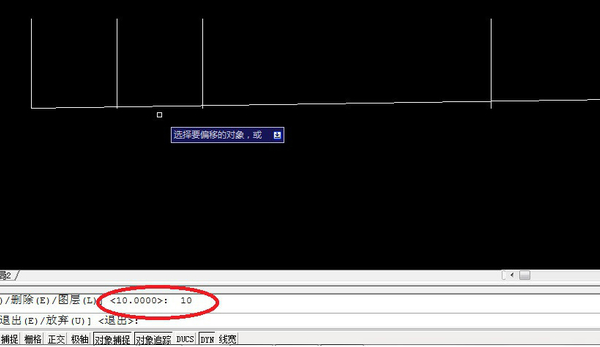 6.输入命令“o”,再次运用平移工具,将水平横线平移相对高程,这里是0.53跟1.59.