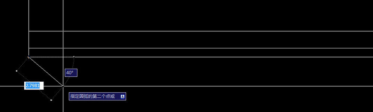 7.输入命令“a”,画弧,选中第一个点的里程跟坐标点,再选中第二点的相对里程跟坐标点,再选中第三点的相对里程跟坐标点,完成。得到一条弧线,删除多余的辅助线。