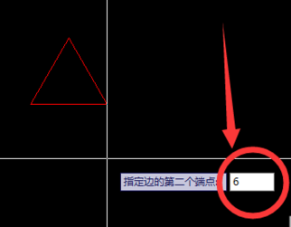 5.输入第二个端点,也就是指定等边三角形的边长,例如本次输入“6”.