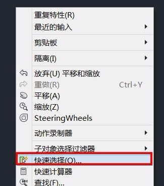 5.按ESC取消选择,在CAD图纸空白处右键点击选择快速选择命令,当然也可以用快捷命令