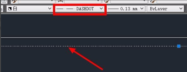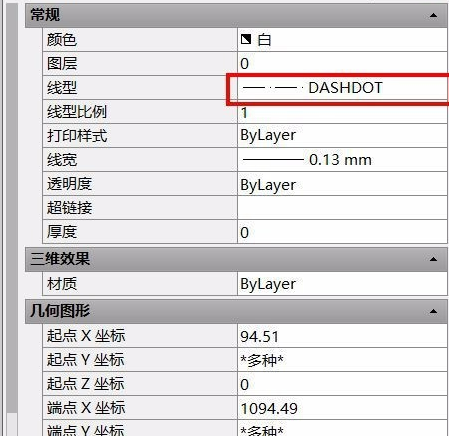 2.选择任意虚线查看线型(因为三维软件生成的折弯线都是统一线型),如果CAD没有设置特性栏可根据第三步提供方法设置