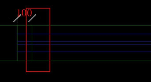 9.墙体线向左和向右各偏移100mm。如图所示:
