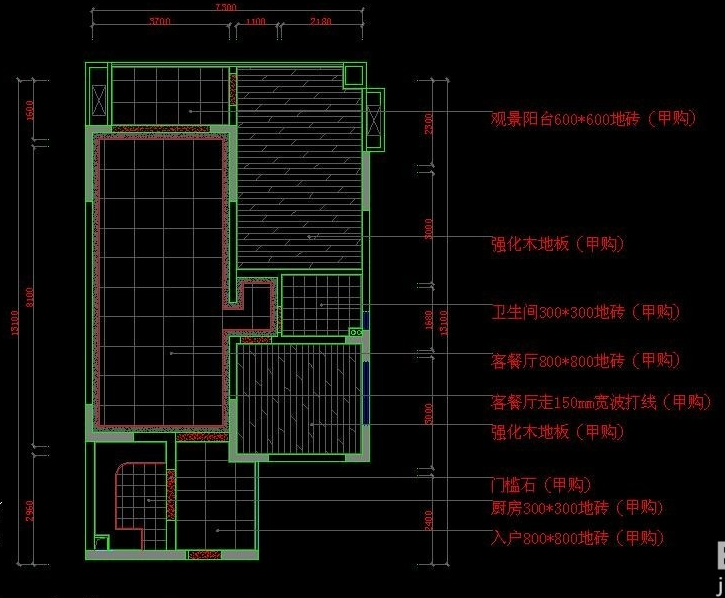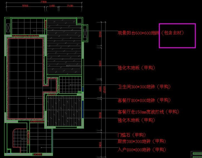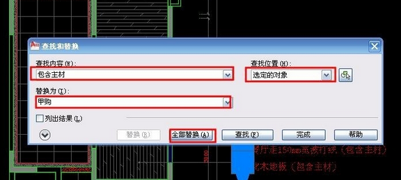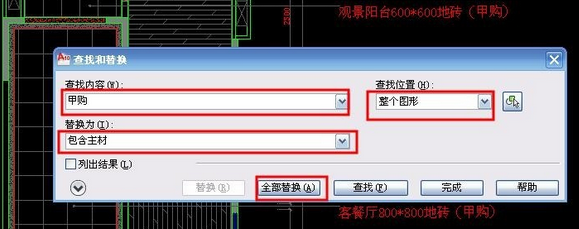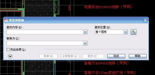 如果CAD画图的时候有很多文字标注,到了后期要修改,我们用find命令就会很方便,我们就用一张地面铺贴图为例来说明find命令的用法。