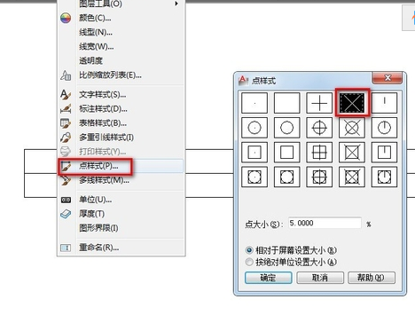 4.点击菜单栏中的“格式”→“点样式”,打开“点样式”框框后,选择的点样式如下图所示。