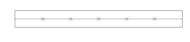 5.选好点样式后,我们点击确定,此时我们可以看到辅助线面出现了五个×,也就是说是五个节点,五个节点把直线分成了6段,如图所示。