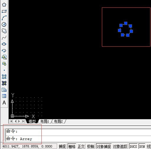 2.选中需要制作环形阵列图形的七边形,在命令行中输入Array(阵列)命令,然后按回车键,跳出阵列参数面板进行设置。也可以直接在【修改】- 【阵列】调出阵列的参数面板。