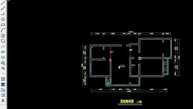 1.首先打开cad,我这里有一套户型的原始结构图,以此为例,下面来说一下户型平面布置的思考点