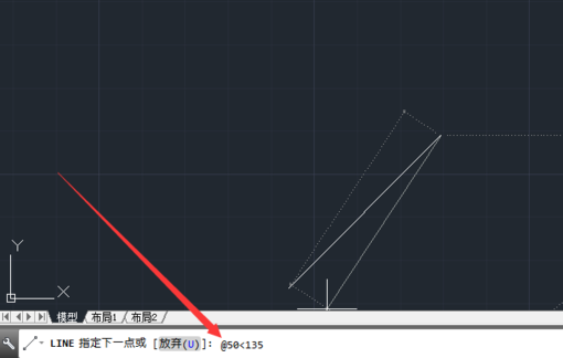 CAD是制图中广泛使用的一款软件,下面我介绍一下CAD软件操作中如何使用相对极坐标系 1.首先使用直线工具确定第一点。 2.在命令行中输入@+长度+<+角度,确认。 3.可以看到,上步骤长度和角度在图中的实际意义。 4.继续输入@+长度+<+90度, 5.可以看到相对的角度,并不是说相对于上一条线,后者线与前者成90度的夹角。 6.在先前情况下,输入@+长度+<+135度, 7.可以看到输入的角度是后者线段相对于水平方向成的角度。