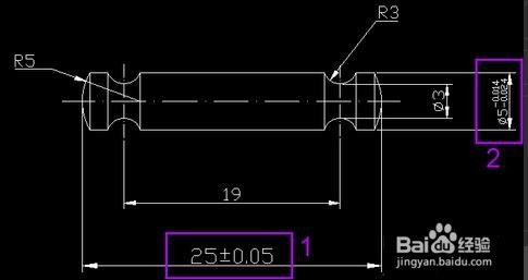 1.打开一张图纸,如图所示两个框出的地方,正好是两种不同公差的标注方式,1为对称公差,2为极限公差