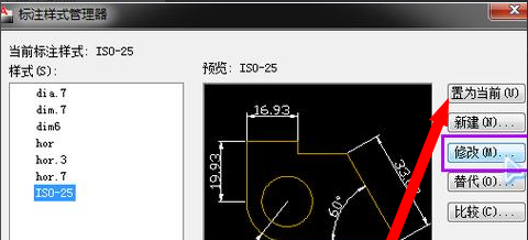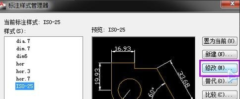 3.弹出“标注样式管理器”对话框,选择当前使用的样式,然后点击“修改”