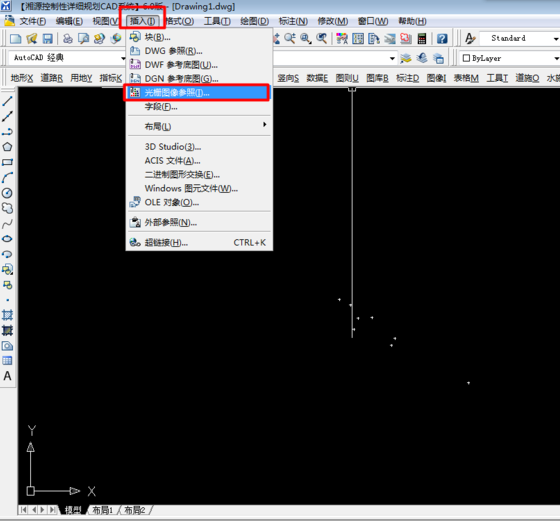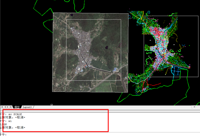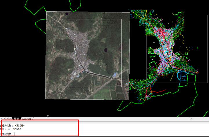2.将卫星图插入CAD,然后使用缩放命令【sc】,选取图片;