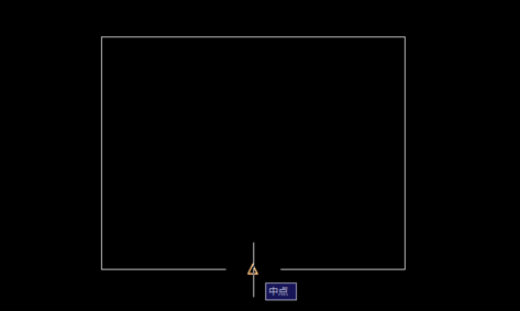 4.如上图,在命令行出现了一个“于”的字符后,在命令行输入中点捕捉命令快捷键mid,将十字光标移动到矩形其中一条边的中点附近,当系统提示中点后单击,如图