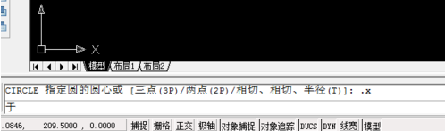 绘制好矩形后,输入圆的快捷键命令C后再启用点过滤器,启动点过滤器的方法是在命令行输入“.x”,注意输入的是双引号里面的内容,双引号不要输入,如图