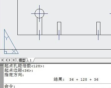 有人问我如何快速地画制家具中的孔位图,我的经验如下. 方法1: 1.打开CAD 输入命令:km 第一点[标注(y/n)]: <-----指定第一点 2.第二点: <-----指定第2点 3.起点孔距倍数<128>: <-----给一个孔与孔这间的距离 命令行有提示距离 方法2 1.起点边距<36>: <-----给第一个点 到孔的距,不给值,直接回车,那么是左右对称。 2.指定方向: <-----确定符号在左还是在右 3.最后确定方向,大功告成.