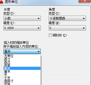 1.设定单位:cad的单位一般为毫米,初次使用时可以调一下看是不是单位设定对了,如果不是毫米制图到后来也是很麻烦的。按UN呼出单位选项,选为毫米。点击确定。