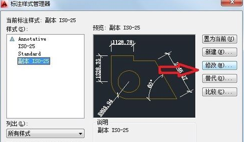 5.修改引线样式:快捷键MLS打开修改引线样式。