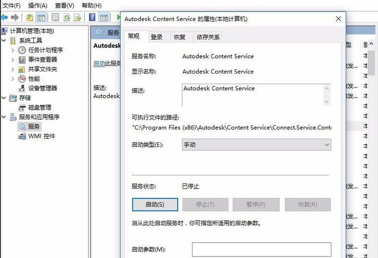4.双击autodesk content service,然后选择停止,选择为手动。