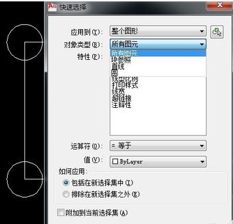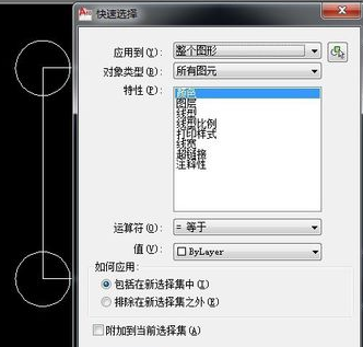 用CAD绘制的图形中,怎么快速的计算这个图形的数量呢? 1.在打开的CAD图纸中,输入命令“QSELECT” 2.按空格键,显示“快速选择”窗口, 3.选择对应的对象类型,这里现在“所有图元”。 4.选择搜索范围,这里选择已知的图形,应用到“当前选择”。 5.选择特性,有颜色、图层、线宽、线性比例等等。 6.选择运算符,有等于、不等于、大于、小于、全选五种。 7.选择特性对应的值,每个特性对应的值不一样。 8.点“确定”,在命令栏中就可以显示对象的数量了。