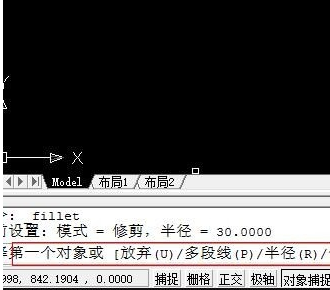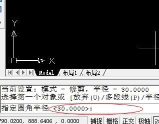 4.回车后,看到指定圆角半径30度,现在就可以去作图了。