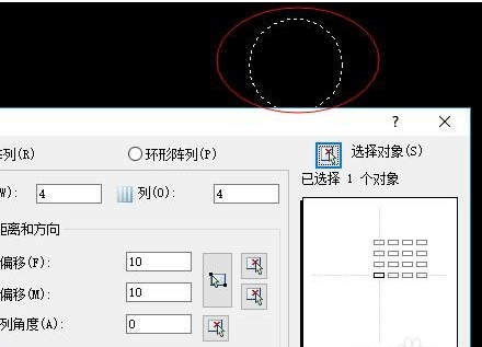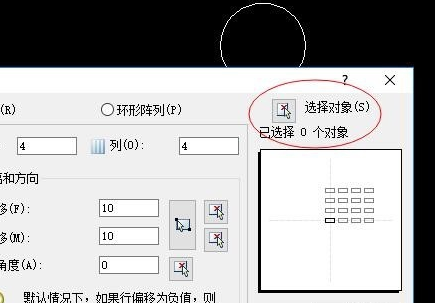 6.点击选择对象,然后选择要阵列的图形,我想阵列的是一个圆。