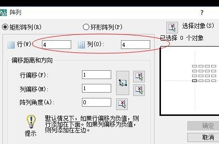 3.点击阵列命令,弹出阵列对话框,只要设置里面的数据,就能形成想要的矩阵。