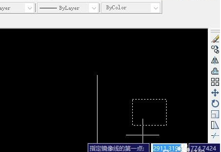 3.点击镜像命令,可以看到鼠标箭头成为个小正方形。