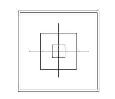 9.再输入REC绘制一个500*500的直角矩形,然后向内偏移三次,分别是10,128,72,然后打开正交模式,输入L命令,在小矩形的中心出画两条直线,如图所示。