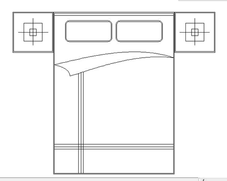 10.将刚才所画的床头柜移动到床的旁边,然后在镜像复制另一个就可以了,如图所示,到这里为止我们的双人床全部画完了。