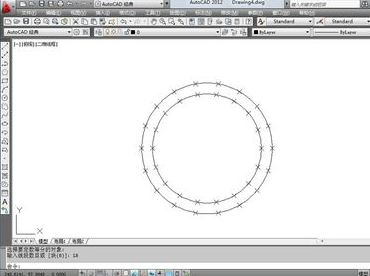 3.点击菜单栏总的“绘图”→“点”→“定数等分”,分别将两个圆分成18份,最后的结果如图所示。