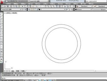 1.首先输入快捷键C绘制两个同心圆,同心圆的半径分别为50和60个单位,因为50和60的半径太大可能无法完全缩放,此时可以双击鼠标的中间那个键就可以自由缩放了,具体的效果如图所示。