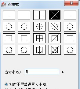 2.点击菜单栏中的 “格式”→“点样式”,选择如图所示的点样式,在下面的“相对于屏幕设置大小”设置为3%,如图所示。