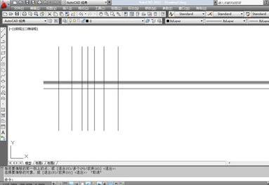 6.输入快捷键O,将左边第三条线向右偏移1个单位,将左边第四条垂直线向左偏移2个单位,将右边第三条垂直线向右偏移3个单位,右边第三条垂直线向左偏移4个单位,水平线向上偏移3和5个单位。最后结果如图所示。