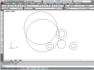 5.继续点击菜单栏中的“绘图”→“圆”→“相切,相切,半径”,如图所示绘制一个半径为70的相切圆。