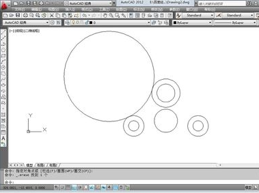 6.点击修剪工具,或者直接输入TR快捷键,进行修剪两个相切圆,最后的修剪结果如图所示。