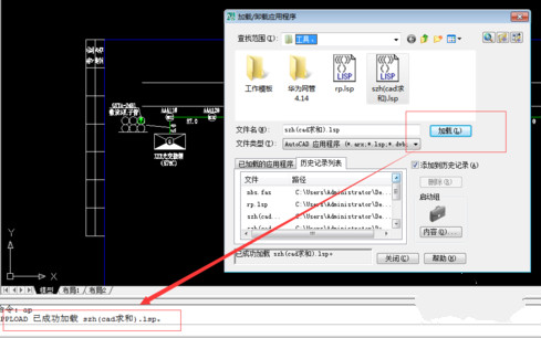 3.输入命令AP,然后选择你下载的插件,点击加载,就会提示你插件加载成功