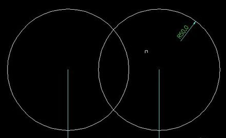 3.用直线连接两圆的二个交点,并用修剪命令修剪,如图所示。