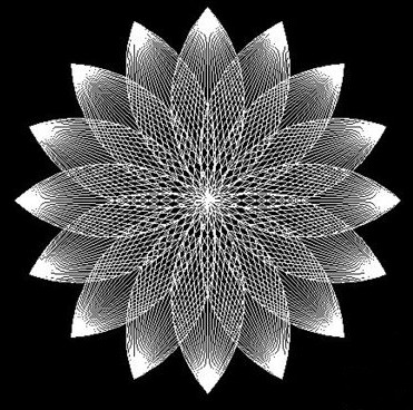 7.用ar(阵列)命令,然后选择“环形阵列”,选择对象为步骤5所示的花瓣,中心点为花瓣最上方点,项目总数为16,填充角度为360°,然后点确定,得到如图所示的荷花。