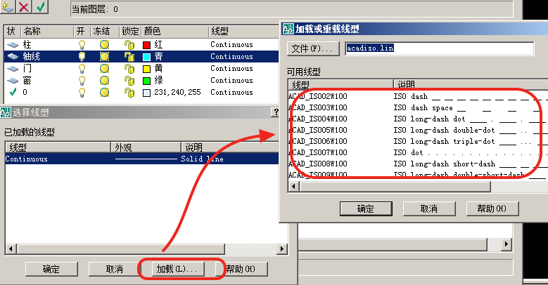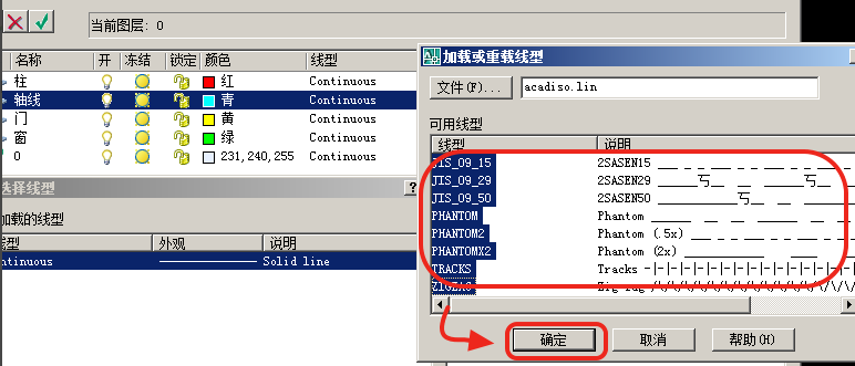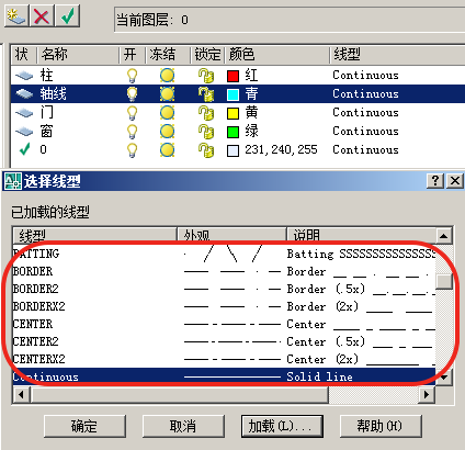 4.这时在选择线型的对话框中就出现了所有线型。这样,我们就可以选择应用了。