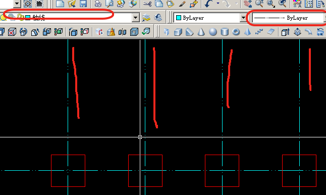 6.在绘制轴线时,我们需要切换到轴线图层,这样绘制出来的轴线,就是设置的蓝色点划线了。