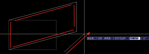 6.如果不开启正交呢?之前说过“基点,是移动长度及方向的基点”那么,矩形将被按如图方向和距离进行拉伸。