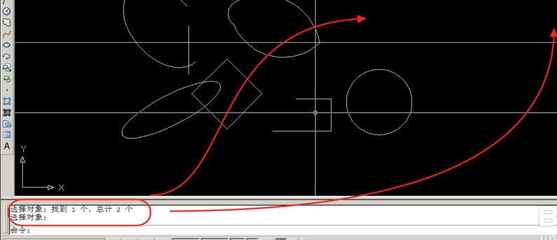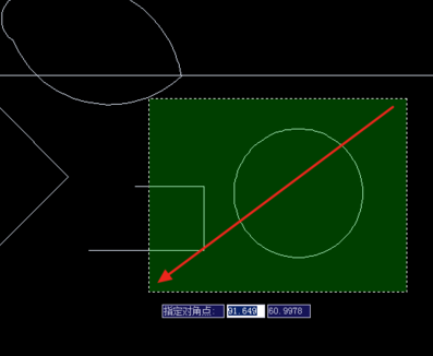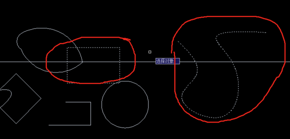 6.交叉窗口,只要框中,框外连带的部分也被选中,交叉窗口的功能更强大一点,框选更精细一点。