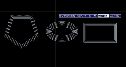 3.依次选择对象和偏移方向,注意第二点只是指定了偏移侧的方向,与距离无关。