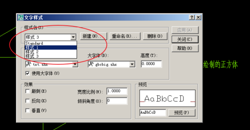 9.在文字样式中设置好字体,在使用时选用合适的文字样式就可以了。