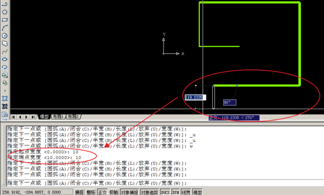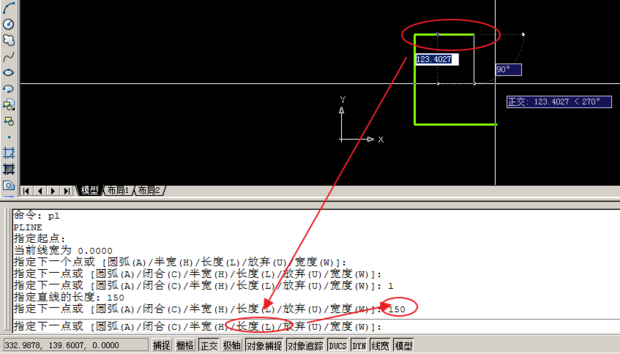 4.当然,可以输入长度来定义pline线的长度。