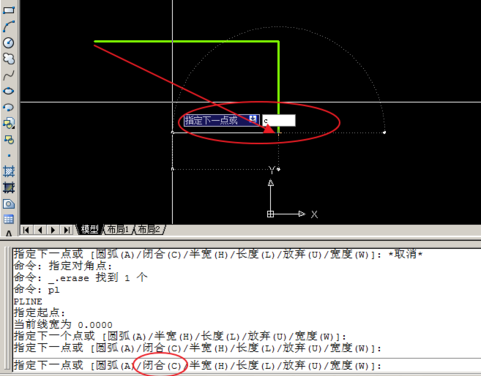 3.输入C可以随时闭合pline线