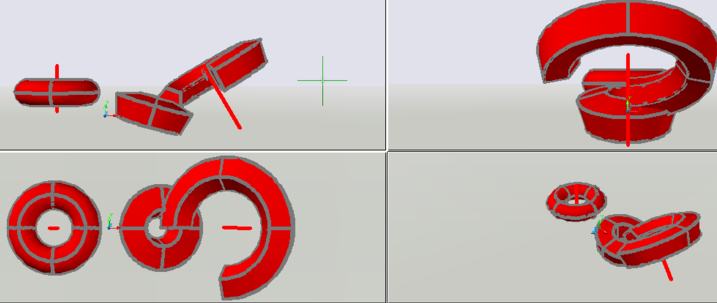 5.当然,我们的轴线可以是水平垂直的,也可以是任意角度的。这里我只旋转了270度,形成了如下半开口的回转体。