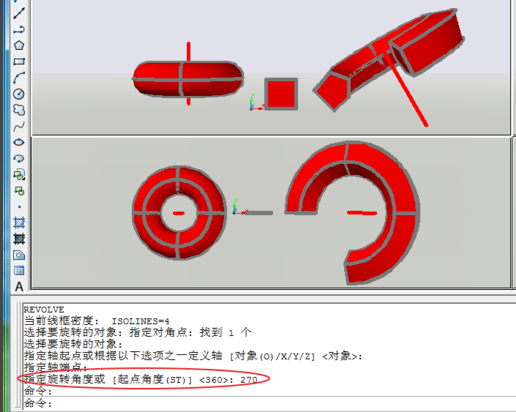 9.使用REV命令时,选择更多个面域和同一条轴线,可以创造出同轴的实体。