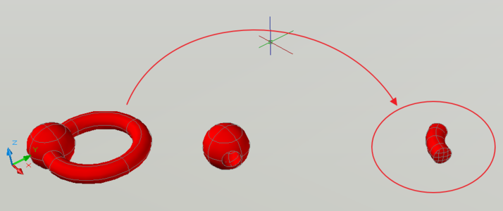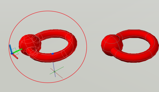 4.用球减去圆环,如下所示,球被穿孔了。