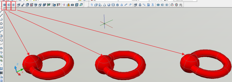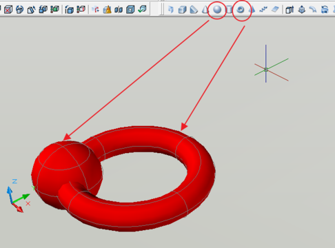 1.我先随意画两个,有交集的两个实体。一个球体和一个圆环。